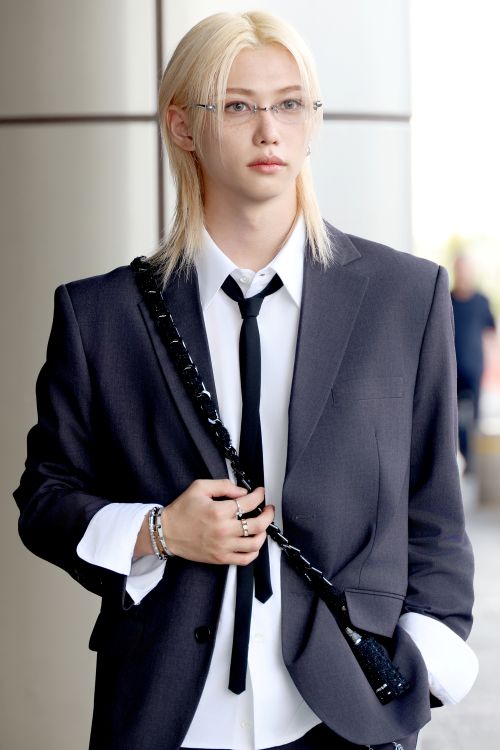 이날 필릭스는 캐주얼한 블랙&화이트 수트에 ‘젠틀몬스터’ 안경으로 포인트를 주어 필릭스만의 힙한 무드가 돋보이는 공항패션을 선보였다