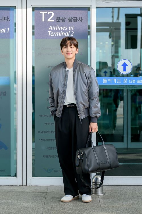 출국길에 오른 지창욱은 캐주‘얼하면서도 절제된 실루엣이 돋보이는 공항패션으로 시선을 사로잡았다. 실크 소재의 ‘톰 포드 봄버 재킷에 부드러운 텍스처의 립 크루넥 티셔츠, 구조적인 라인이 돋보이는 브로큰 트윌 더블 플리츠 팬츠를 매치해 모던하고 시크한 스타일을 연출했다.