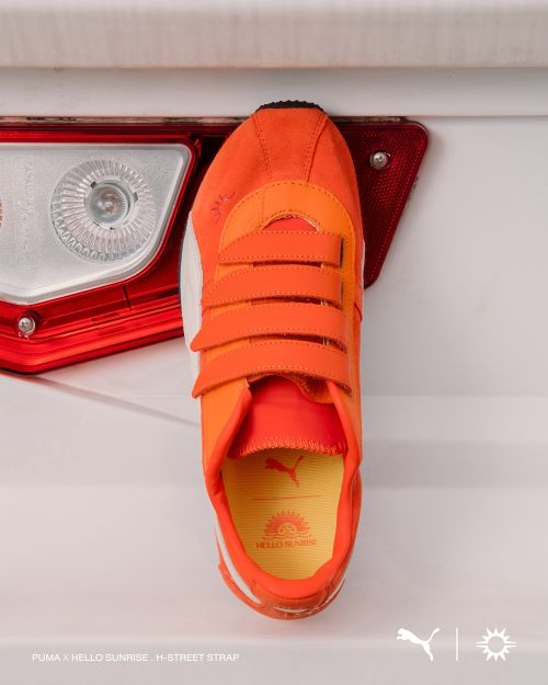 함께 주목할 만한 또 다른 아이템은 지난 9월 25일 선런칭 된 ‘푸마’의 아이코닉 로우-프로파일 스니커즈, ‘푸마 X 헬로 선라이즈 H-Street 스트랩’이다. 낮은 굽과 날렵한 실루엣의 로우-프로파일 트렌드를 이어갈 제품으로 ‘푸마’의 트랙 & 필드 헤리티지를 지닌 H-Street에 ‘헬로 선라이즈’ 로고와 컬렉션의 메인 컬러인 오렌지를 적용한 디자인이 특징이다. 스웨이드 소재 어퍼와 스트랩 형태의 벨크로 클로저가 돋보이며 H-Street 프렌차이즈 중에서도 유일하게 스트랩이 적용돼 유니크한 매력을 자랑한다.