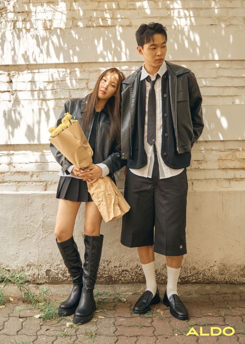 레트로 스니커즈 화보에선 장난스럽고 편안한 남매만의 케미스트리를 보여주었다면 이번 부츠샵 화보에서는 블랙 레더 재킷과 셔츠 레이어드 스타일링으로 세련된 무드를 연출했다. 특히 박지연은 ‘알도’의 롱부츠를 포인트 아이템으로 활용해 계절감을 살리면서 시크한 매력을 한층 강조했다.