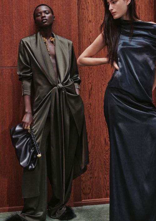 이번 컬렉션은 파티웨어, 아우터, 니트웨어, 테이러링까지 아우르며 실키하고 유려한 소재에 메탈 디테일과 페이크 퍼, 그리고 포인트 니트로 구성된다.