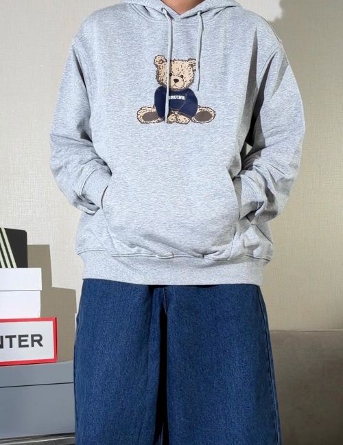 남녀 공용 프레피 릴 베어 후디는 최근 인플루언서 윤성준과 함께한 단독 기획전으로 화제가 된 제품이다. 멜란지 그레이와 네이비 총 2가지 컬러로 출시되었으며 중앙의 ‘UCLA’ 베어 아트워크가 포인트로 들어가 특유의 프레피한 감을 더한다. 또한 남녀공용으로 제작되어 캠퍼스룩이나 커플룩으로 연출하기도 좋은 아이템이다.
