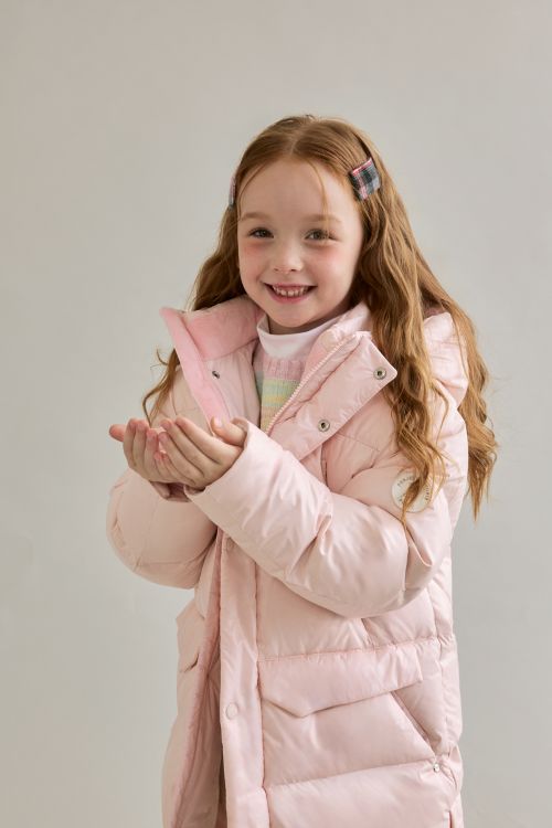스타일에 있어서도 아이의 개성과 활동성에 따라 3가지 라인업으로 구성되어 있다. 화보 속 여아가 착용한 아우터는 탈 부착이 가능한 퍼 트리밍 후드 점퍼로 은은한 광택감의 트렌디한 감성으로 포근하고 세련된 스타일링을 완성할 수 있다.