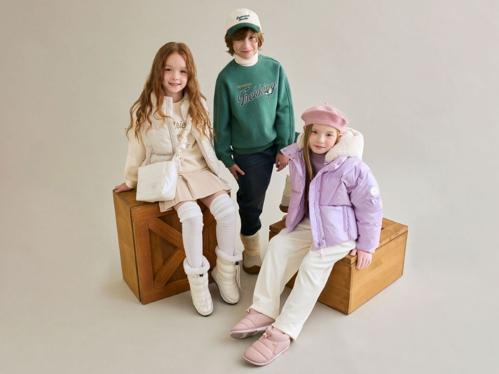 또한 남아 화보 속 패딩 점퍼는 가볍고 볼륨감 있는 핏으로 포근한 분위기를 완성하며 생활 방수 기능과 여유로운 사이즈 구성으로 활동적인 아이들의 겨울 일상에 최적화 되었다.