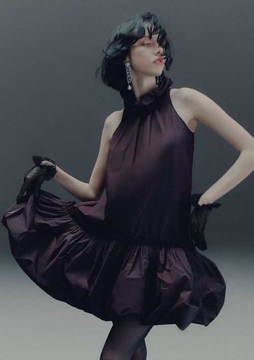 볼륨감 있는 러플 드레스와 날카로운 숄더 블레이저, 강렬한 도트 레이스와 다크하지만 화려한 플로럴 프린트, 워시드 레더에서 시스루 스팽글 메시까지 폭넓은 아이템으로 완성된 컬렉션이다.