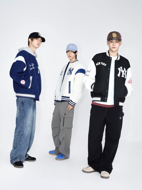 도훈, 영재, 지훈은 ‘시그니처 바시티 점퍼’를 착용해 ‘MLB’ 바시티 자켓의 헤리티지를 현대적으로 재해석했다. 프리미엄 울 소재와 나일론 두 가지 라인으로 구성된 바시티 점퍼로 클래식하면서도 세련된 무드를 연출했으며 ‘빈티지 나노 언스트럭쳐 볼캡’을 함께 매치해 빈티지하면서도 자연스러운 스타일링을 완성했다.