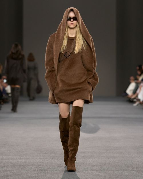 군주로서 마틸데의 절정기가 1081년이었다면 ‘막스마라’의 역사적 전환점은 하우스의 상징적인 아이콘 코트 101801이 탄생한 1981년이다. 이 해를 기점으로 막스마라는 여성의 역량 강화를 향한 약속과 함께 성장하는 여성들을 하나로 모으는 중심이 되어 왔다. ‘막스마라’ 아카이브는 브랜드를 상징하는 강인한 숄더 라인의 건축적 아우터웨어를 토대로 전개된 초기 컬렉션들로부터 비롯된 영감으로 가득하다. 늑대와 여우, 사자를 연상시키는 색조 속에서 ‘막스마라’는 현대 여성을 마틸데에 투영해 전장을 지배하는 여왕 대신 침착하고 두려움 없이 보드룸을 장악하는 신여성으로 재해석했다.