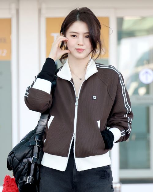 이날 한소희는 브라우니 컬러의 니트트랙 집업에 실버 스니커즈를 매치해 스포티하면서도 트렌디한 공항패션을 완성했다.