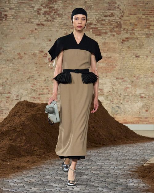 그녀의 날렵한 테일러드 드레스는 언제나 모스키노의 DNA를 특징지어 온 장인 정신과 공명하며 피날레에서 생동감을 주는 러플과 함께 기쁨의 순간을 전한다.