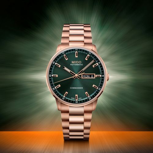 새롭게 선보인 커맨더 다투데이는 커맨더 컬렉션의 헤리티지를 기반으로 로즈 골드 PVD 케이스와 3링크 메탈 브레이슬릿, 선레이 브러시드 그린 다이얼을 조합해 현대적인 감각으로 재해석한 모델이다. 다투데이라는 이름에 걸맞게 요일과 날짜를 동시에 표시하는 디스플레이를 갖춰 실용성과 디자인을 모두 충족시킨다.