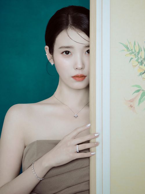 아이유가 오프숄더 드레스와 함께 착용한 ‘셀레스티아’ 주얼리 컬렉션은 ‘Celestial’와 ‘Star’의 합성어로 천상의 별과 같은 빛나는 아름다움을 심장박동에 따라 흔들리는 댄싱스톤으로 표현했다.