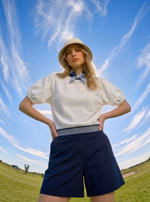 대표 제품은 붓터치 패턴으로 예술적 감성을 강조한 폴로 티셔츠와 뒷면에 필드를 연상시키는 그래픽이 들어간 스웨터, 세련된 테이퍼드 핏의 팬츠 등 필드 착장에 최적화된 의류를 중심으로 구성됐다. 여기에 모자, 볼타월, 볼마커 등 액세서리까지 확대해 컬렉션의 완성도를 높였다. 특히 팔 뒷면, 허리 벨트 안쪽, 모자 뒷면 등 제품 곳곳에 강아지 자수를 숨겨 위트 있는 디테일을 더했다.