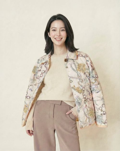 일교차가 큰 날씨에 걸맞으면서도 화사한 컬러감과 편안한 실루엣을 강조한 것이 특징이다. 봄이면 빼놓을 수 없는 플라워 패턴이 적용된 점퍼를 과감히 선택했다.