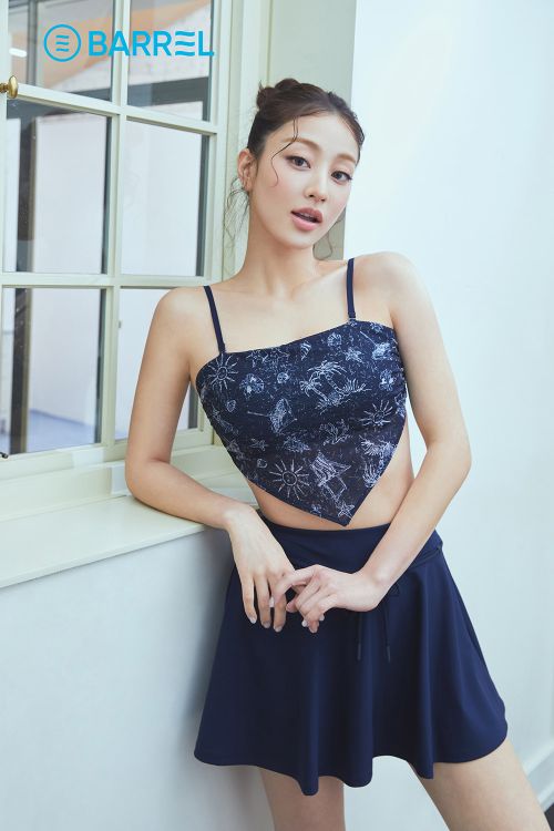 화보 속 지효는 ‘배럴’의 시그니처 아이템 래쉬가드를 비롯해 비키니, 워터 쇼츠, 커버업 등 다양한 스윔웨어를 착용하며 다채로운 스타일을 선보였다.
