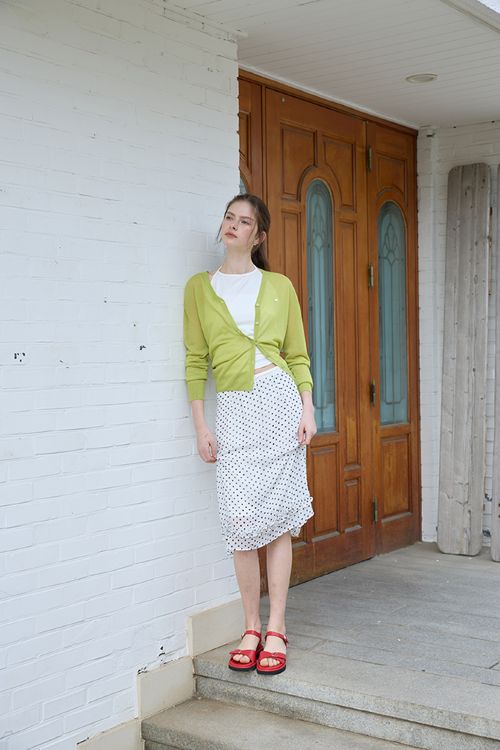 또한 린넨 혼방 원사를 사용해 한여름에도 시원하게 입을 수 있는 카디건은 기본 핏으로 편안하게 착용하기 좋고 속이 살짝 비치는 시어한 소재로 여성스러운 분위기까지 더했다.