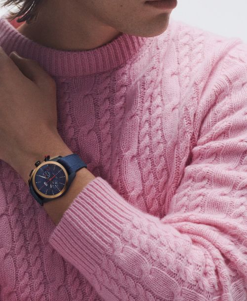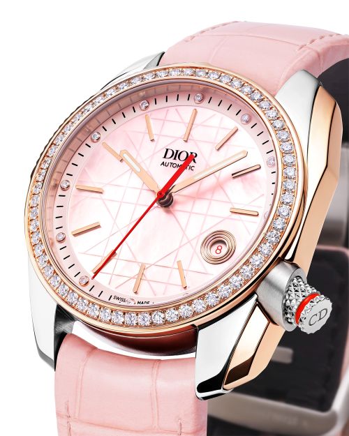 또한 파스텔 핑크 컬러를 입은 38mm 사이즈 모델은 디올 하우스의 창의성을 더욱 확장했다. 스틸 케이스에 다이아몬드를 세팅한 로즈 골드 베젤을 더하고 핑크 마더 오브 펄 다이얼로 섬세하면서도 우아한 매력을 극대화했다.