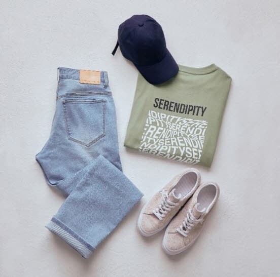 레터링 티셔츠는 밋밋해 보일 수 있는 스타일에 패션 포인트를 줄 수 있다. 카키 톤의 수피마 티셔츠는 등 부분 레터링 디자인이 경쾌하면서 발랄한 무드를 선사한다. 또한 프리미엄 면 소재를 사용해 높은 내구성과 다양한 컬러로 취향에 맞게 고를 수 있다.