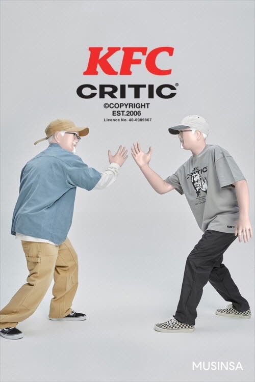 KFC하면 떠오르는 창립자 커넬 샌더스를 캐릭터로 유쾌하게 풀어낸 ‘크리틱 X KFC’ 콜라보레이션도 있다. 독특한 룩북이 인상적인 ‘크리틱 X KFC’의 만남은 2011년 치킨 킬러 캐릭터를 선보인 크리틱이 KFC에 9년간의 구애한 끝에 성사됐다. ‘크리틱’의 패러디 그래픽과 KFC의 오리지널 그래픽을 적절히 조화시켜 재미있는 제품으로 탄생시켰다.