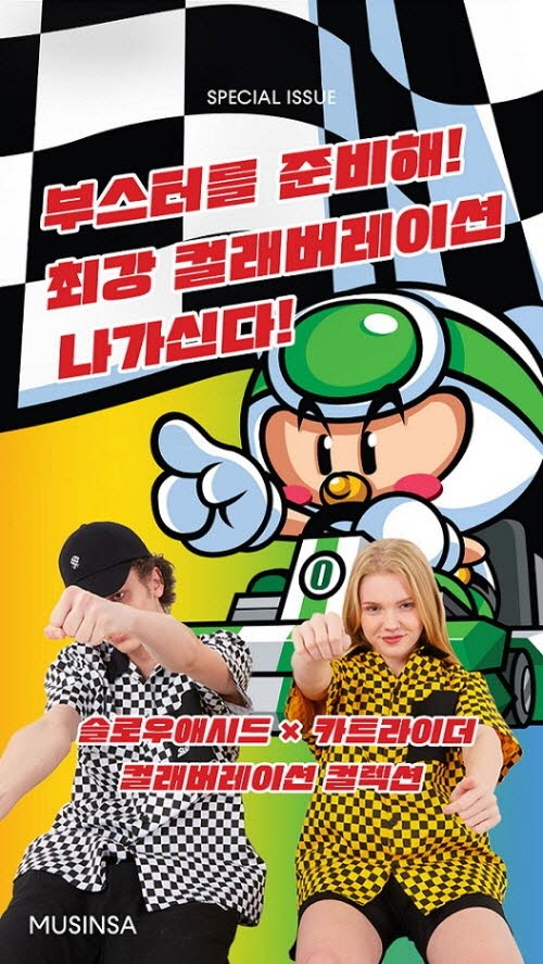 컨템포러리 캐주얼 브랜드 ‘슬로우애시드’와 넥슨 게임 ‘크레이지레이싱 카트라이더’ 협업도 이색적이다. 캐릭터에 친숙한 게임 유저는 물론 대중의 소비 욕구를 자극하며 기대를 모으고 있다.