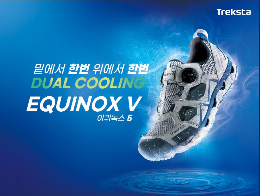 ‘트렉스타’가 더 강력한 쿨링감과 통기성을 선사하는 아쿠아 쿨링 슈즈 신제품 ‘이퀴녹스 5’를 출시했다.