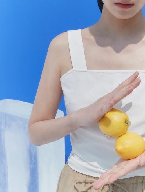 ‘구호플러스’는 와이드 크롭 팬츠에 블루 레몬 그래픽의 반팔 티셔츠를 매치해 경쾌한 포인트 룩을 제안했다. 블루 레몬 티셔츠는 레귤러 핏과 세미 오버 핏, 두 가지 스타일로 출시됐다. 화이트와 시즌 컬러인 애플 그린을 적용했으며, 실켓 가공 처리된 부드러운 코튼 소재를 사용해 착용감이 우수하다.