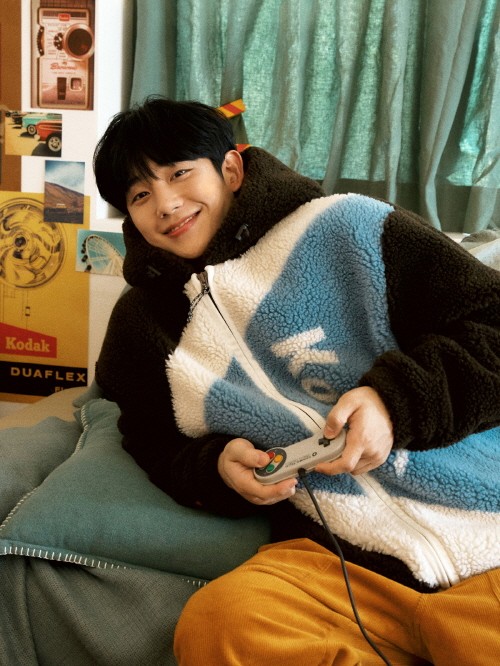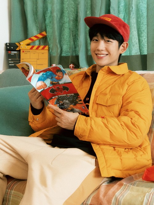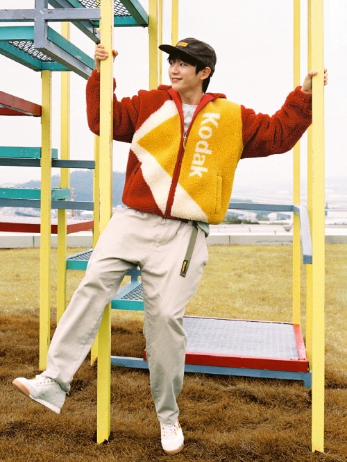 화보에서 정해인은 자연스러운 실루엣과 컬러 대비가 돋보이는 오버 핏의 코닥 케이플리스 자켓을 티셔츠, 바지 등 다양한 착장과 함께 결합하며 누구나 편하게 입을 수 있는 다양한 플리스 룩을 제안했다. 이외에도 플리스에 들어간 포인트색상에 맞춘 모자를 착용해 같은 의상, 다른 느낌을 보여줬다.