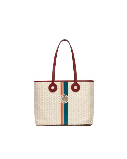 리넨 코튼 캔버스 소재로 만들어져 부드럽고 자연스러운 촉감과 실루엣을 자랑하며 핸들과 가장자리는 튼튼한 소가죽으로 마감되었을 뿐만 아니라 선명한 레드 컬러의 대비로 한층 고급스러움을 자아낸다. 또한 앞면의 컬러풀한 스트라이프 패턴의 삼색 리본은 영하고 스포티한 감성을 더한다.