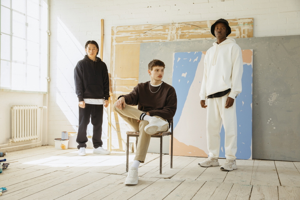 H&M 남성복 디자인 팀은 어깨 선의 실루엣, 스웨트 팬츠의 비율, 넥라인 리브의 폭 등 스트리트 웨어에서 중요한 구체적인 디테일을 강조했다. 블랭크 스테이플스는 베이지, 오프 화이트, 브라운, 블랙의 모던한 컬러 팔레트로 구성되어 있다.