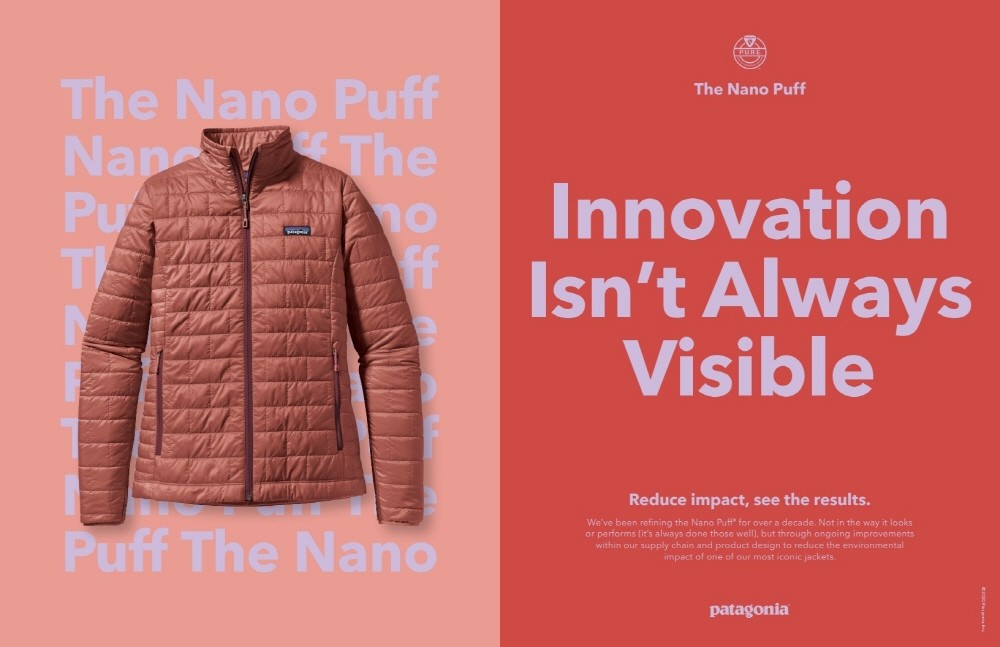 나노 퍼프는 일상생활은 물론이고 클라이밍부터 스키, 여행 등 다양한 아웃도어 활동에서 따뜻하게 체온을 유지할 수 있어 활용도가 높은 ‘파타고니아’의 대표적인 다용도 경량 보온 재킷이다. 파타고니아는 지난 10년 간 끊임없이 나노 퍼프를 개선하였다. 외양과 기능은 그대로 유지하면서 생산 공정과 제품 디자인의 개선을 통해 환경에 미치는 영향을 지속적으로 줄여왔다.