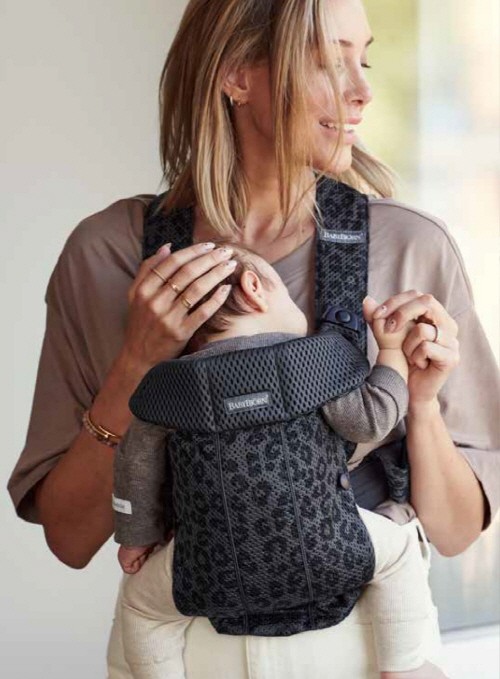 베이비 캐리어 원 레오파드는 코튼만 단독 출시되며 신생아부터 36개월까지 사용 가능하고 신생아 앞보기, 유아 앞보기, 바깥보기, 뒤로 엎기 등 4가지 포지션이 가능하다.