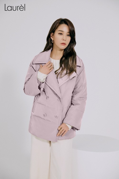 한고은은 간절기부터 봄까지 활용도 높은 빅카라 디자인의 패딩 코트를 팬츠와 스커트에 각각 스타일링해 세련된 페미닌룩을 선보였다.