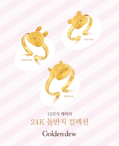 골든듀가 각 해를 상징하는 12간지 동물을 콘셉트로 그해에 태어난 소중한 아이의 첫 생일을 축하하는 마음을 담은 12간지 캐릭터 24K 돌반지를 출시했다.