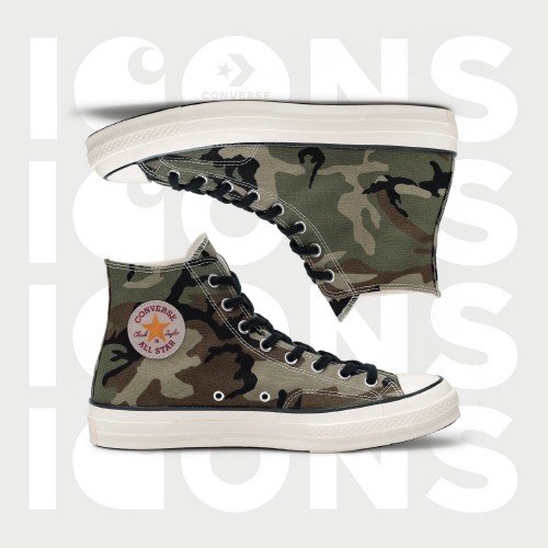 칼하트 WIP 시그니처인 카모플라쥬 패턴과 해밀턴 브라운 캔버스 소재를 처음으로 척 70하이에 적용하였고 워크웨어 패브릭과 오솔라이트 인솔로 내구성과 편안한 착화감을 제공한다.