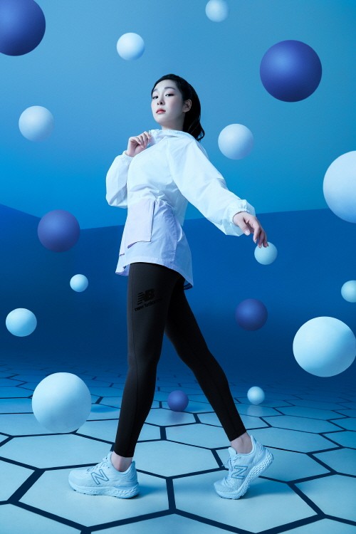 이번 화보는 전체적으로 프레시폼 육각형 모양과 쿠셔닝을 형상화한 듯한 통통 튀는 무드로 진행됐다. 김연아의 생동감 넘친 움직임을 담아낸 모습과 ‘뉴발란스’의 바람막이 아노락, 프레시폼 러닝화 등을 착용해 스포티한 느낌을 자아내 눈길을 끌었다.
